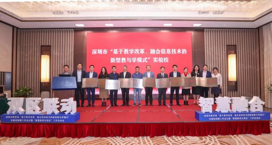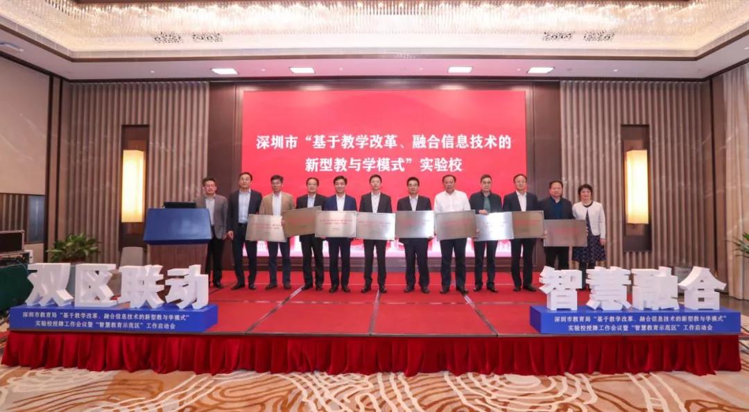 深圳市教育局党组成员、副局长邱成瑜为教育部“基于教学改革、融合信息技术的新型教与学模式”实验校授牌,深圳市信息化教学实验区校级实验项目正式启动。同时,深圳市全面开启“智慧教育示范区”建设工作,探索人工智能时代以新一代信息技术促进教育改革发展的新路径。