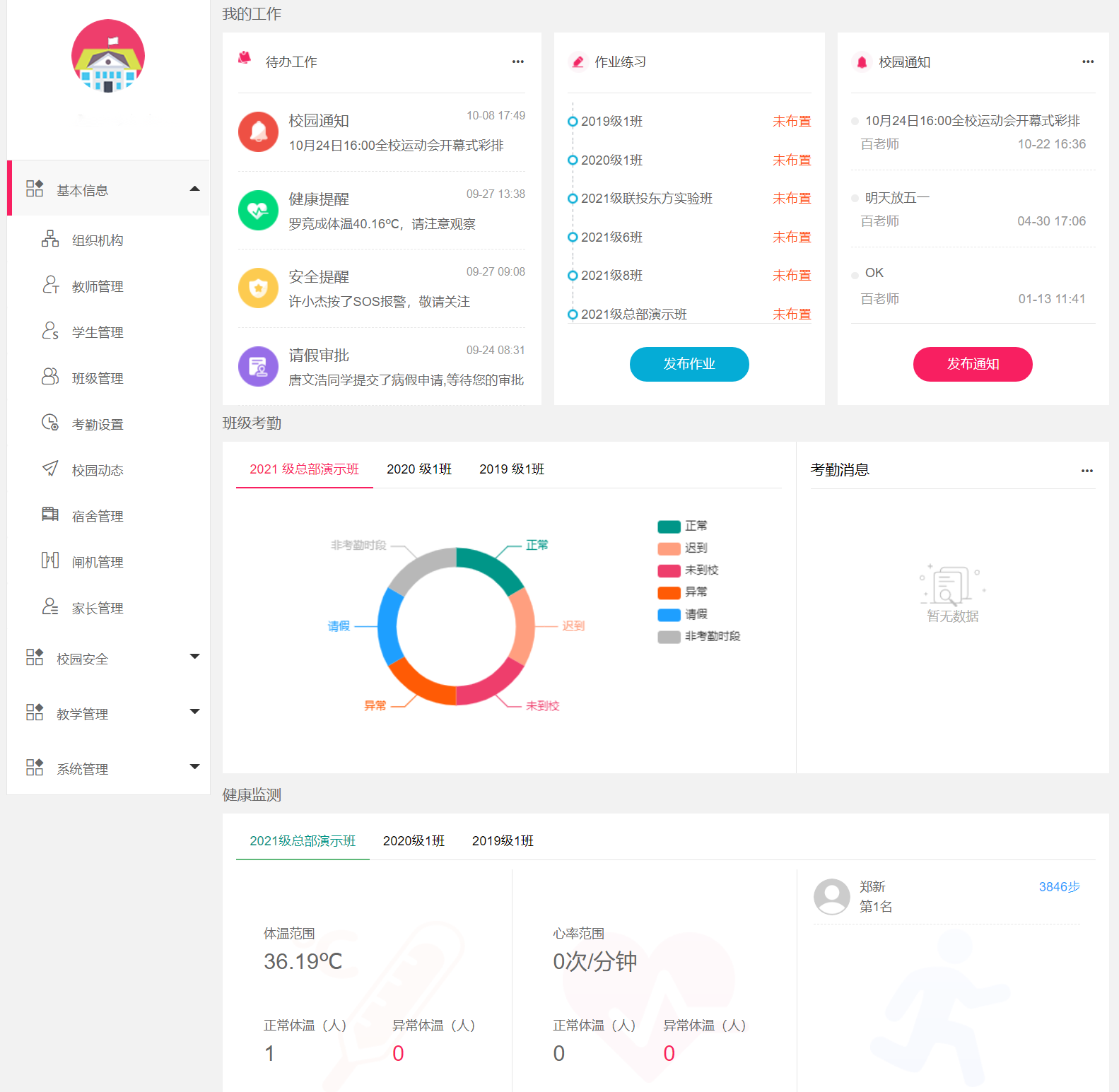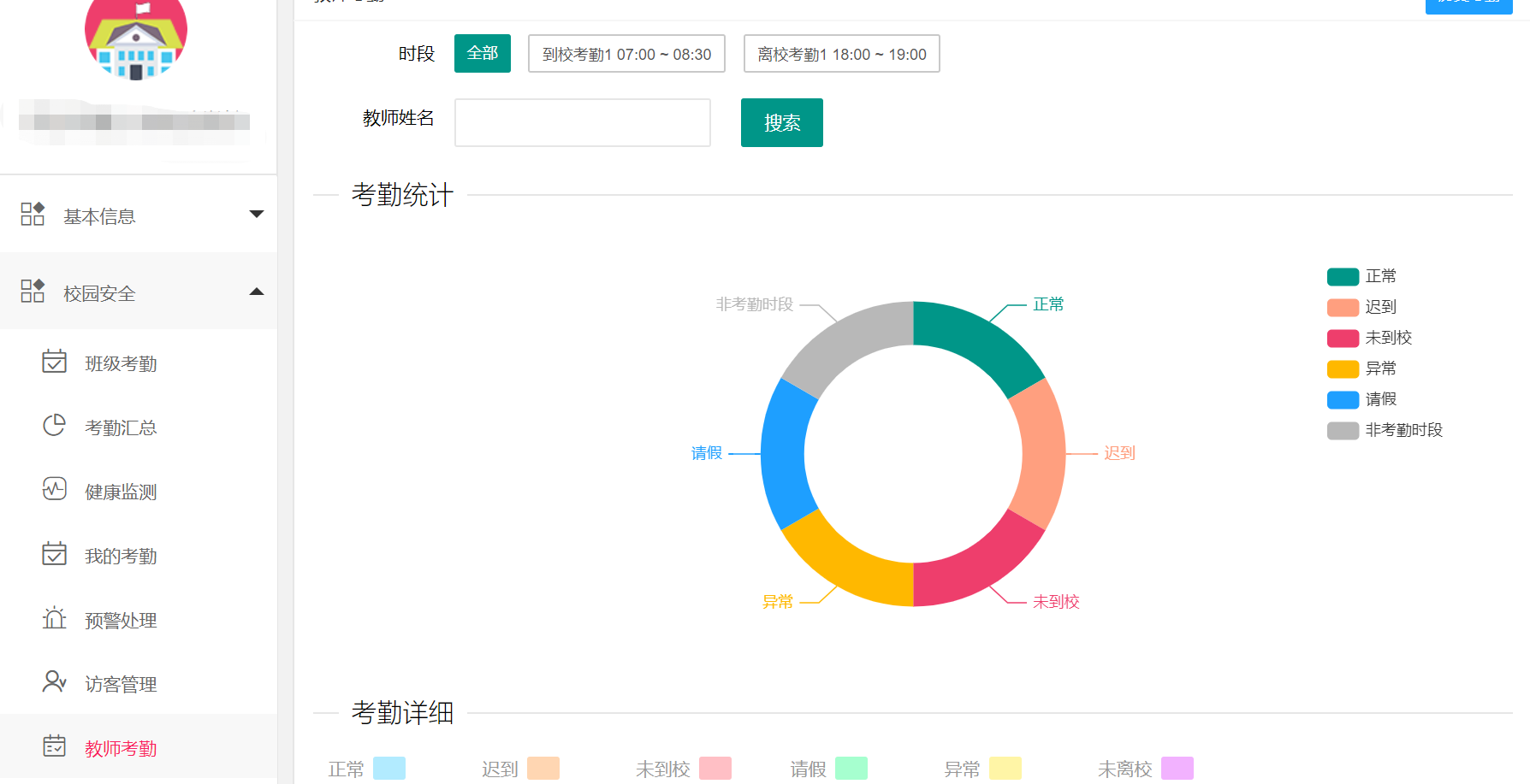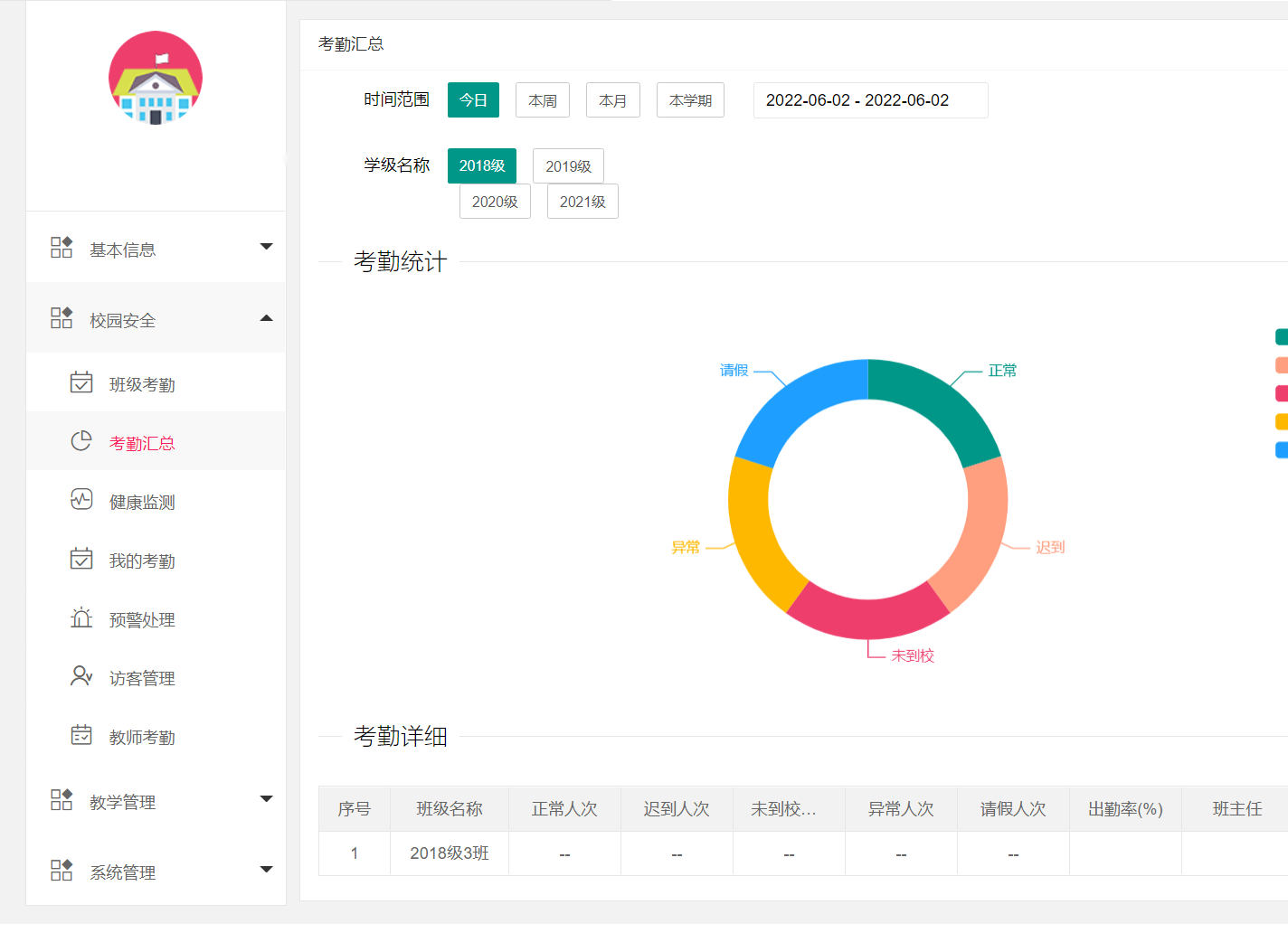 对学校的所有考勤数据进行汇总,进行可视化表达,信息一目了然。