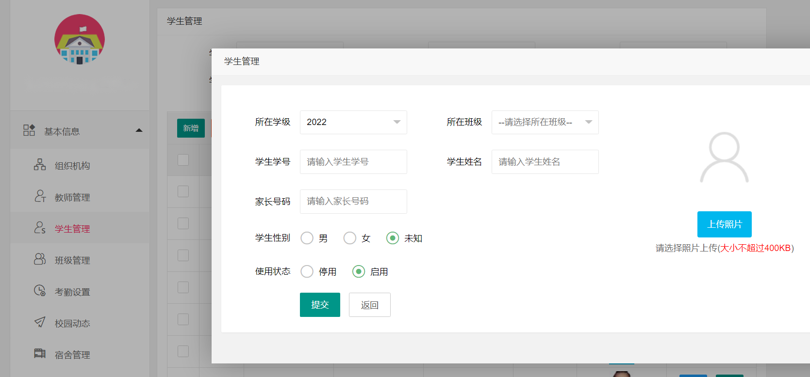 能对学校学生身份进行录入,用以统一管理和数据统计,能与电子学生证进行关联绑定,实现物联功能。