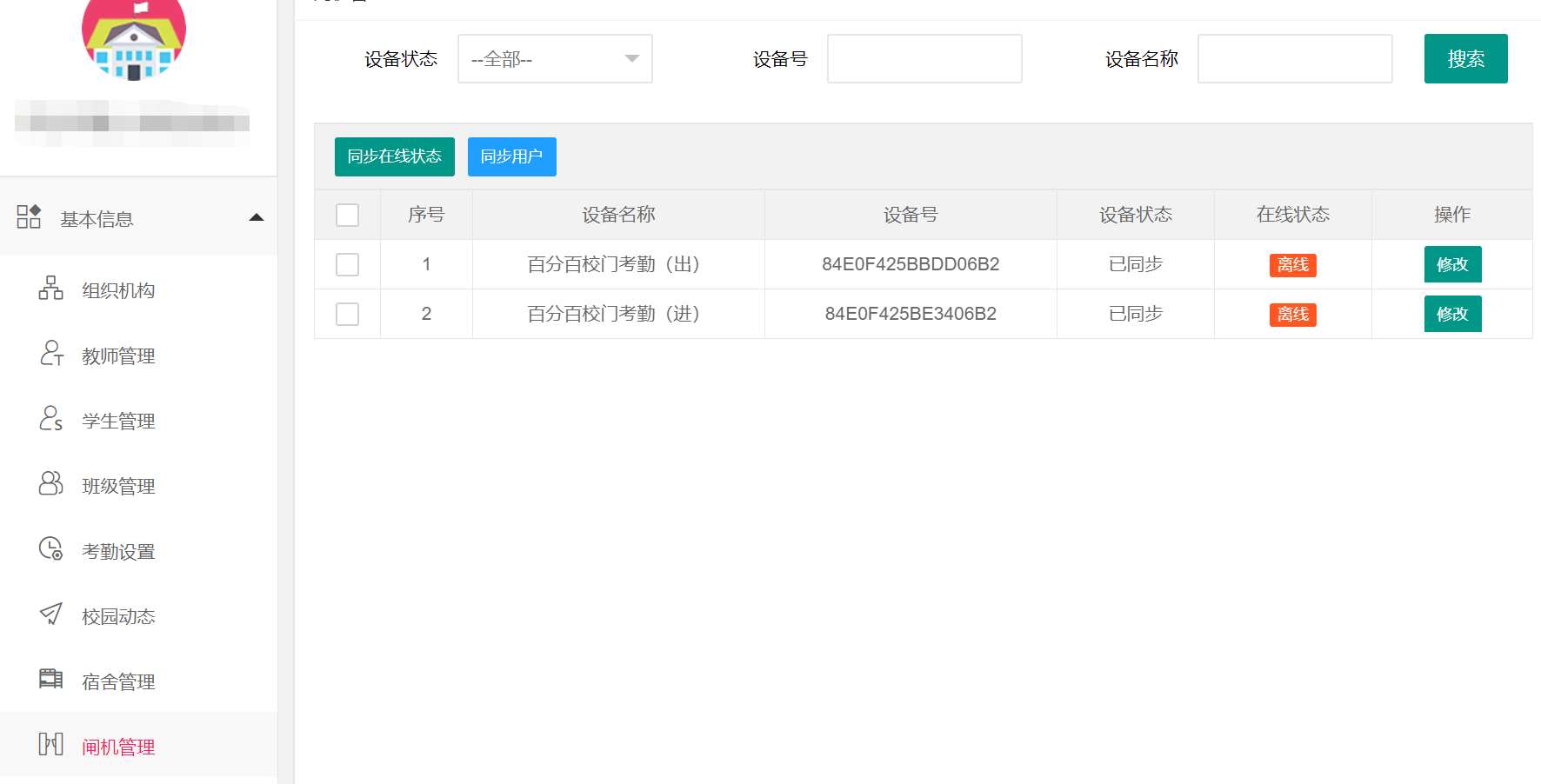 用来对学校使用的闸机进行线上管理,实现对电子学生证的关联监控。