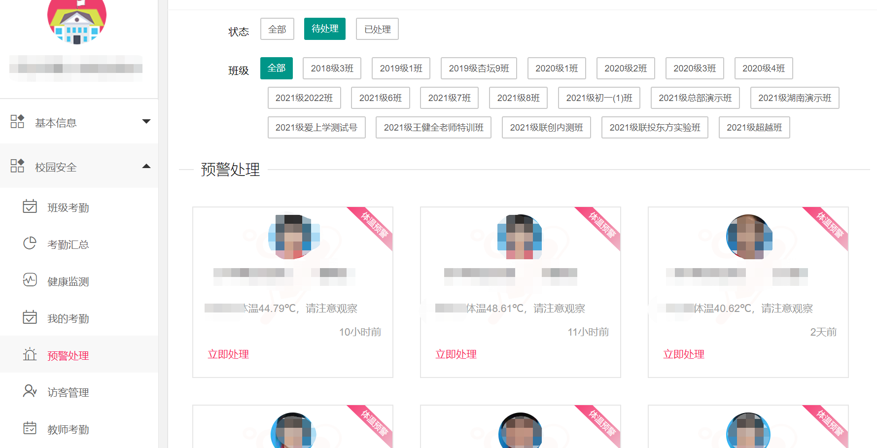对学生的电子学生证反馈的危险信息,进行可视话表达,同时反应实时状态。
