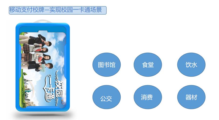 移动支付一卡通NFC、RFID扩展兼容宿舍门禁刷卡识别、图书馆刷卡借阅、水控刷卡消费、超市小额支付、食堂刷卡消费。
