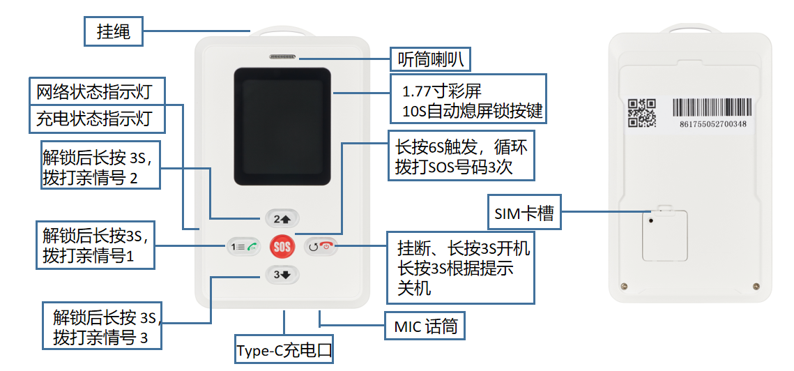 本公司全新研发的新一代4G电子学生证,以白色为基调,优化四角,增添了5个智能按键,按钮设计柔软。高度集成了溯源、安全、测温的设备;关注未成年人身心成长,为家长提供便捷关心孩子的入口。